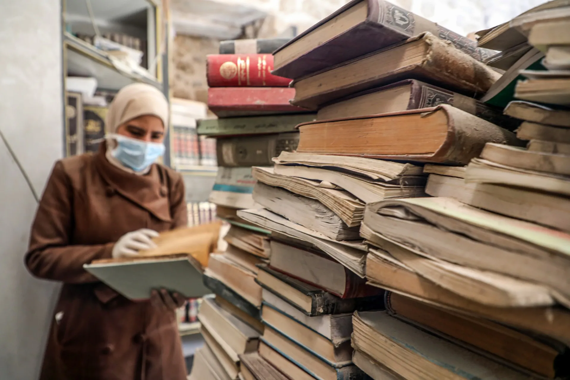 غزة: متطوعون يتحدون الدمار لإنقاذ كنوز مكتبة المسجد العمري